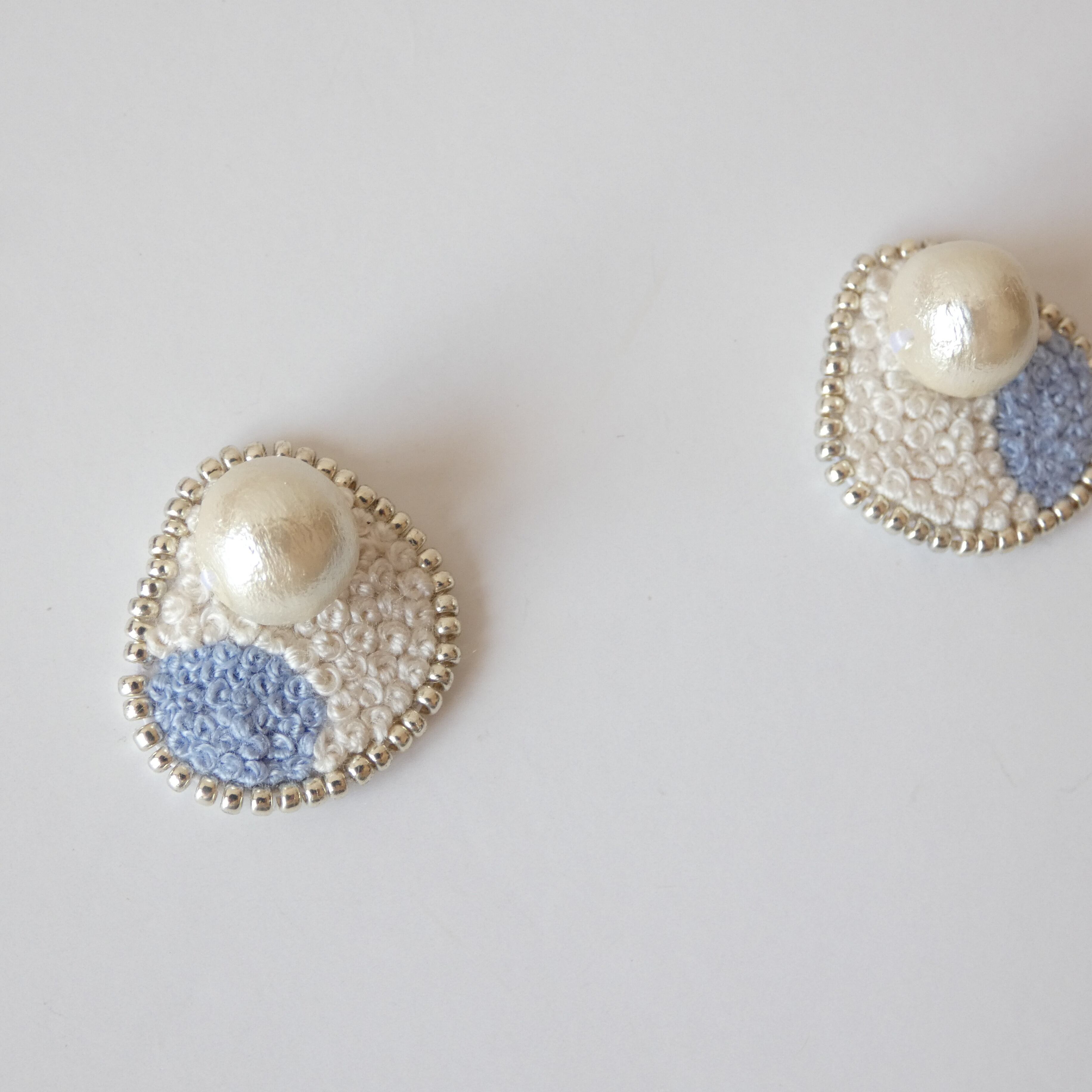【使用素材】刺繍糸・ビーズ・合皮・金属(ピアス:チタン/イヤリング:真鍮)・パール