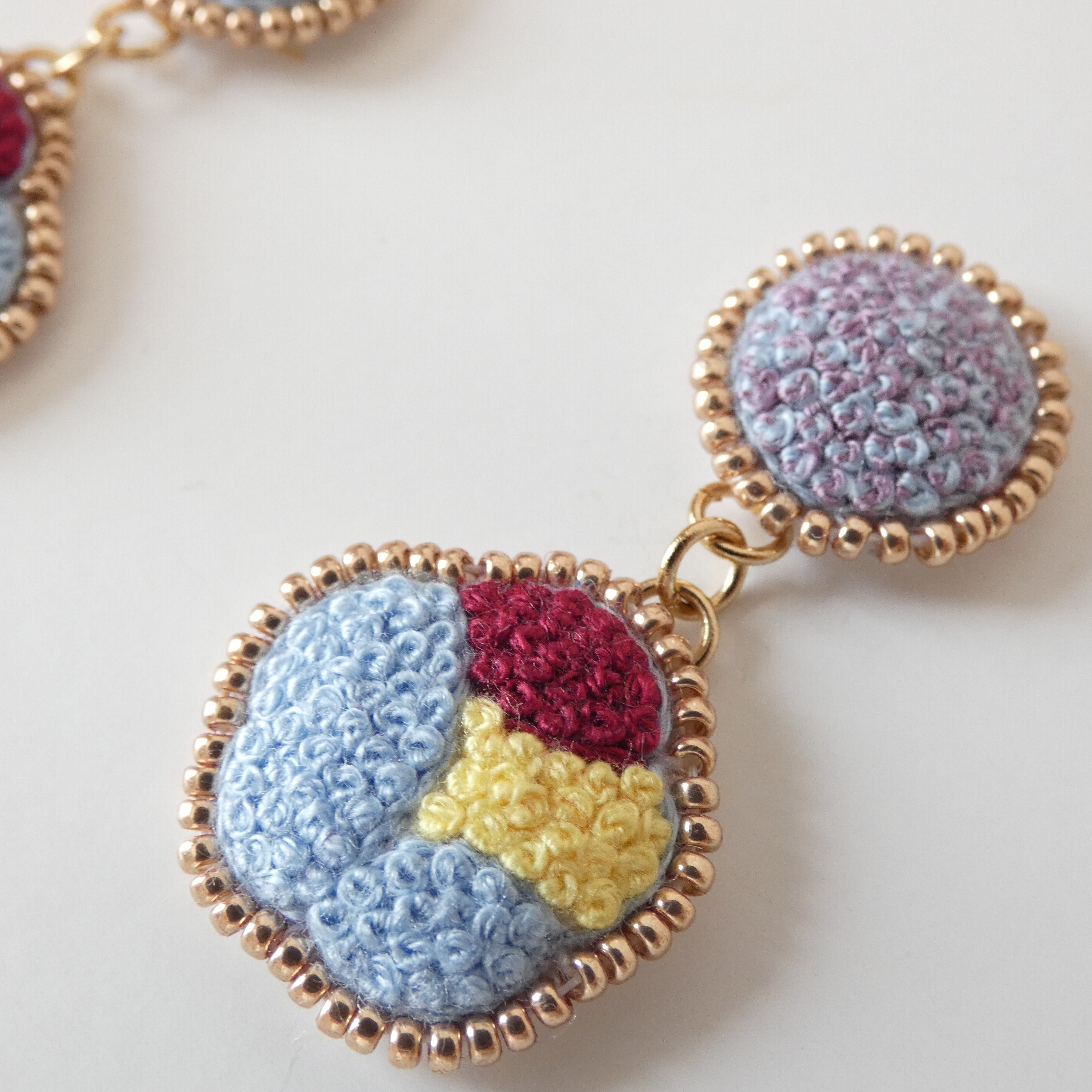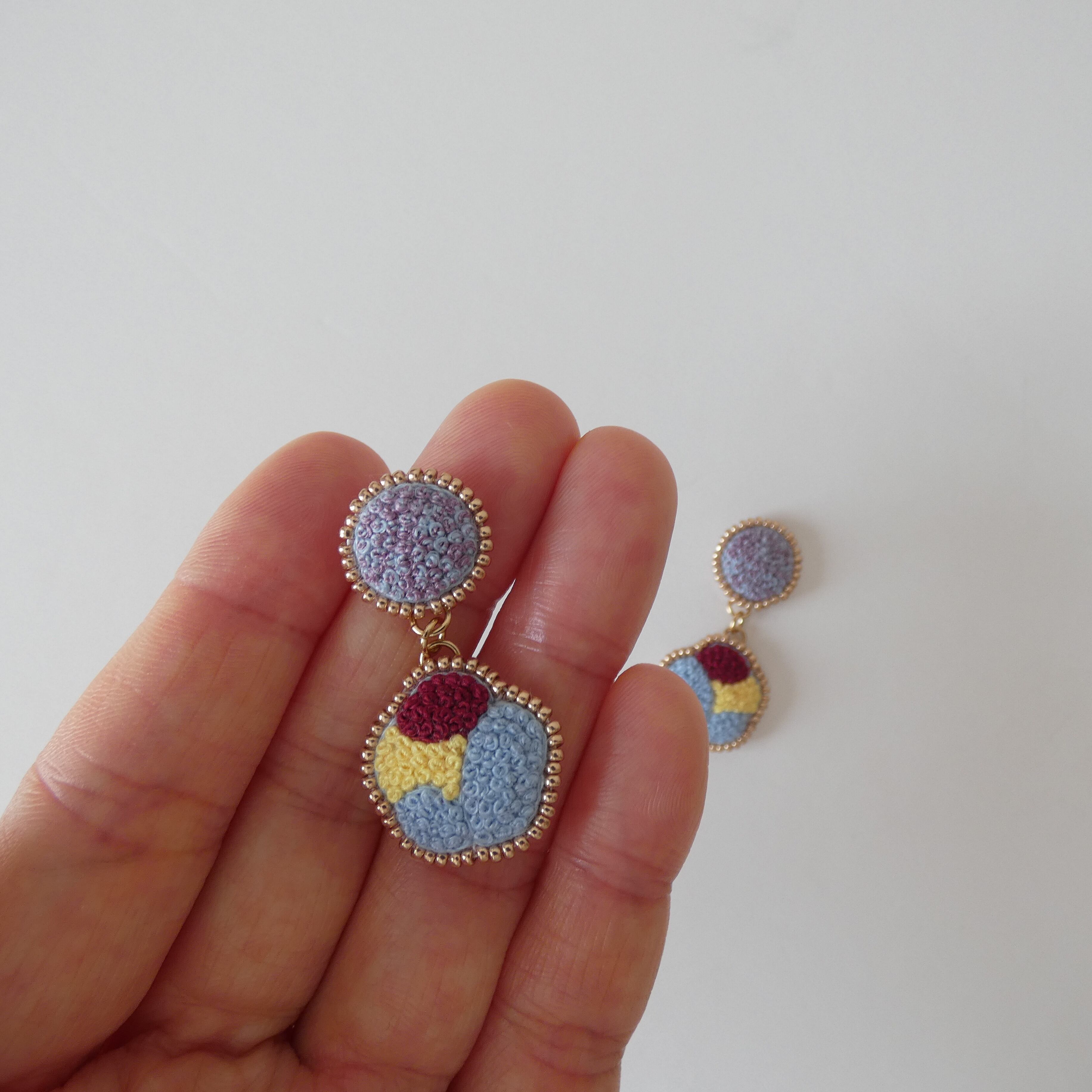 【使用素材】刺繍糸・ビーズ・合皮・金属(ピアス:チタン/イヤリング:真鍮)