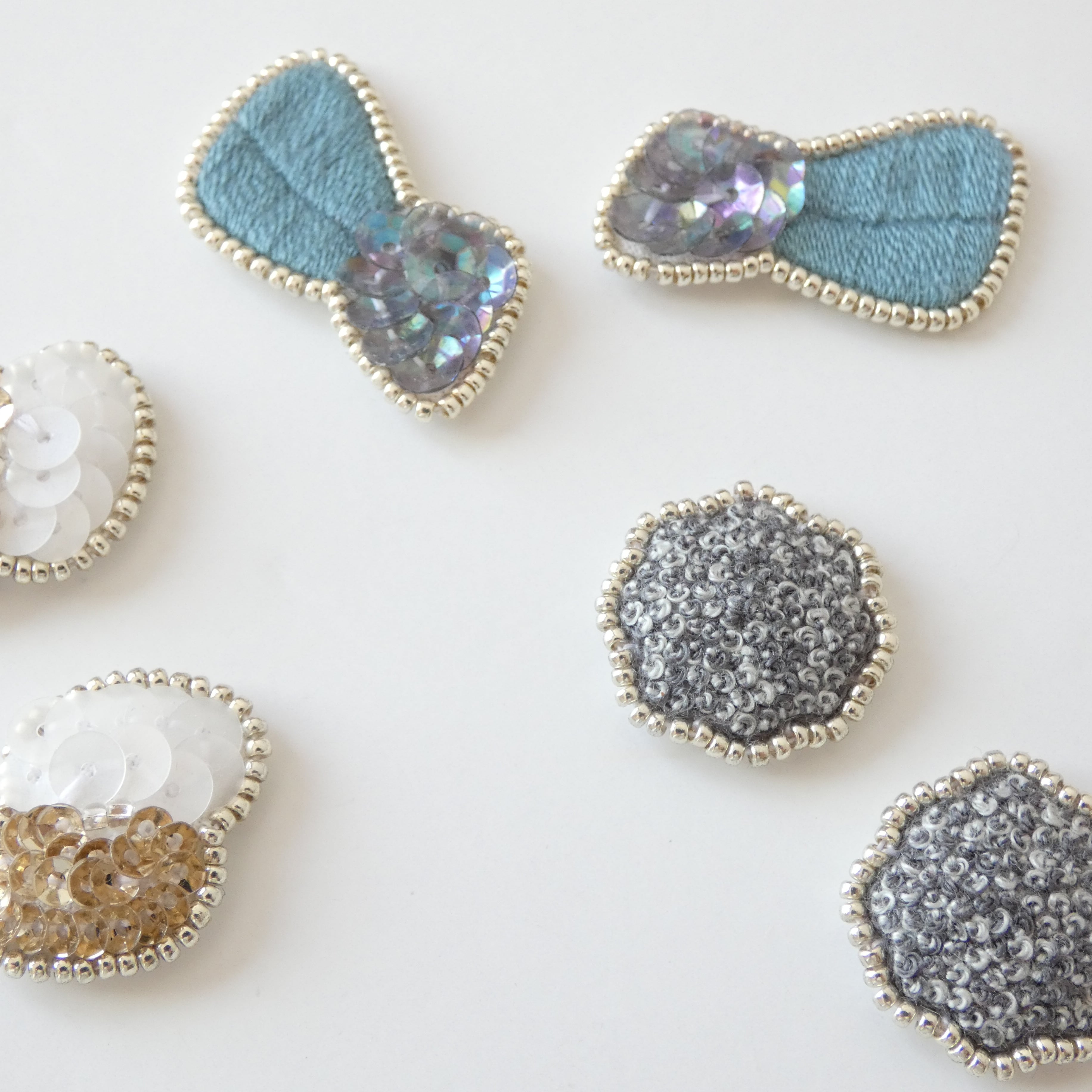 【使用素材】刺繍糸・合皮・金属(ピアス:チタン/イヤリング:真鍮)・ビーズ・スパンコール