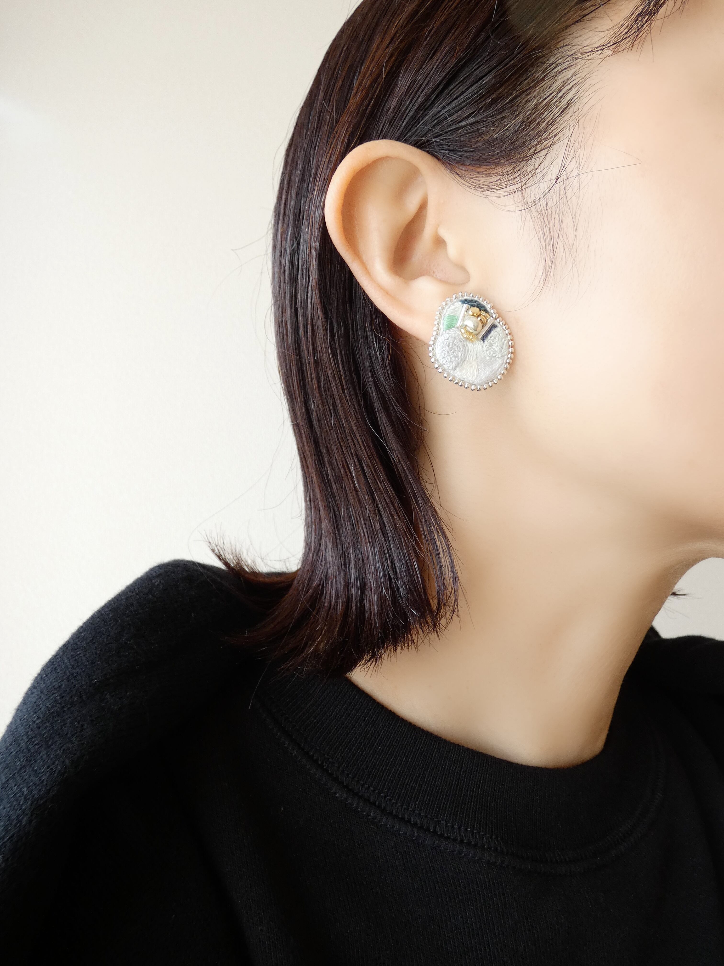 【使用素材】刺繍糸・合皮・金属(ピアス:チタン/イヤリング:真鍮)・ビーズ