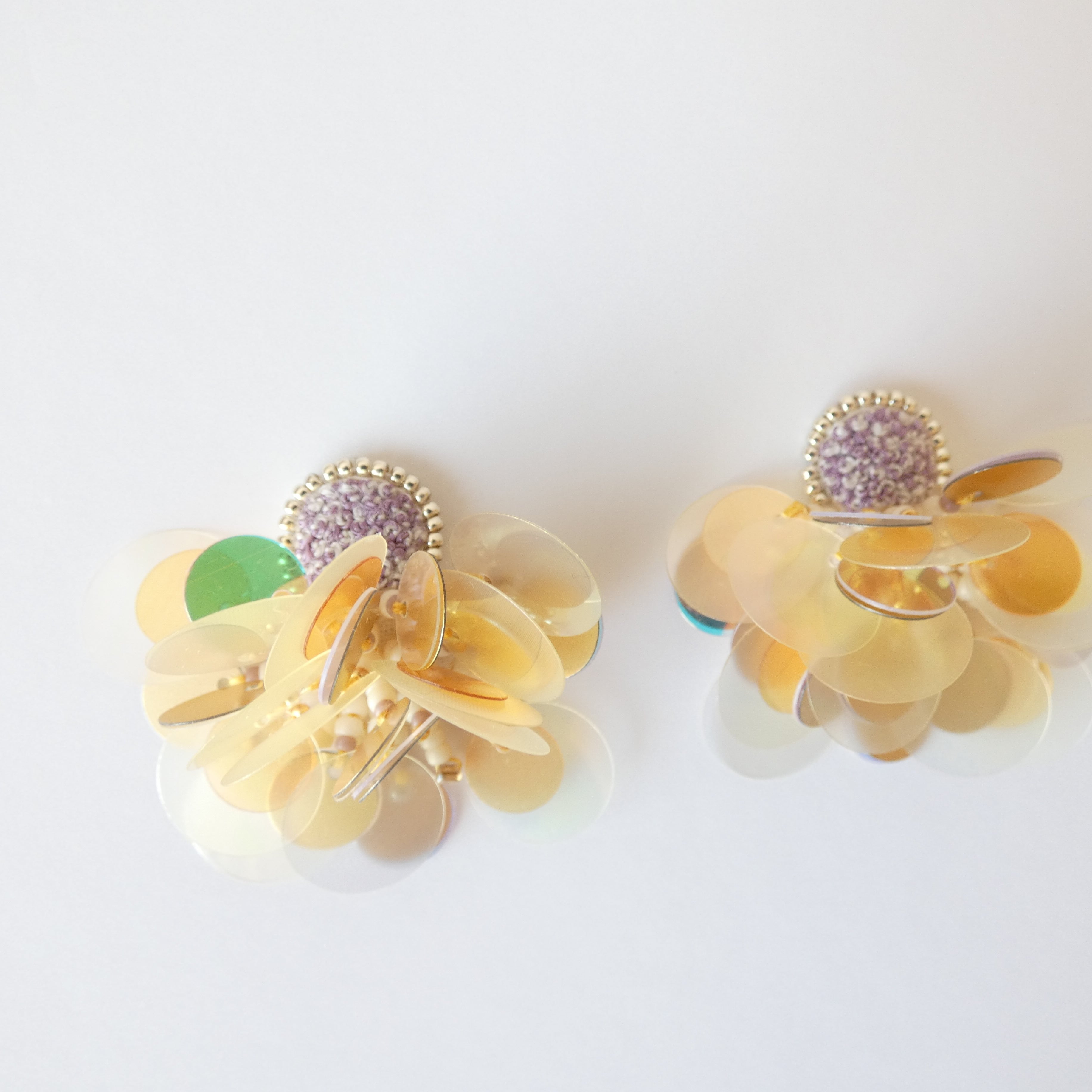 【使用素材】刺繍糸・合皮・金属(ピアス:チタン/イヤリング:真鍮)・ビーズ・スパンコール