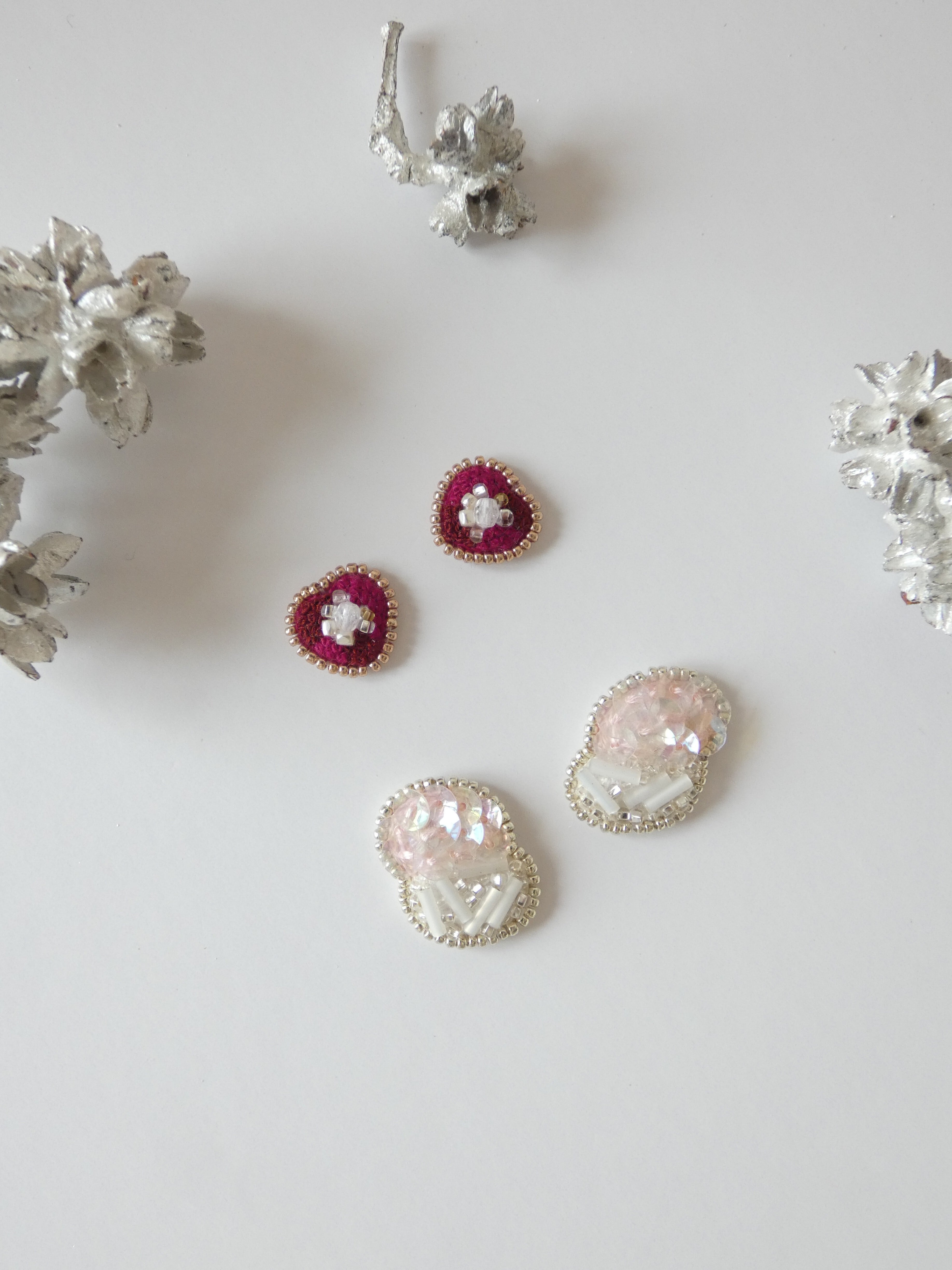 【使用素材】刺繍糸・合皮・金属(ピアス:チタン/イヤリング:真鍮)・ビーズ・スパンコール