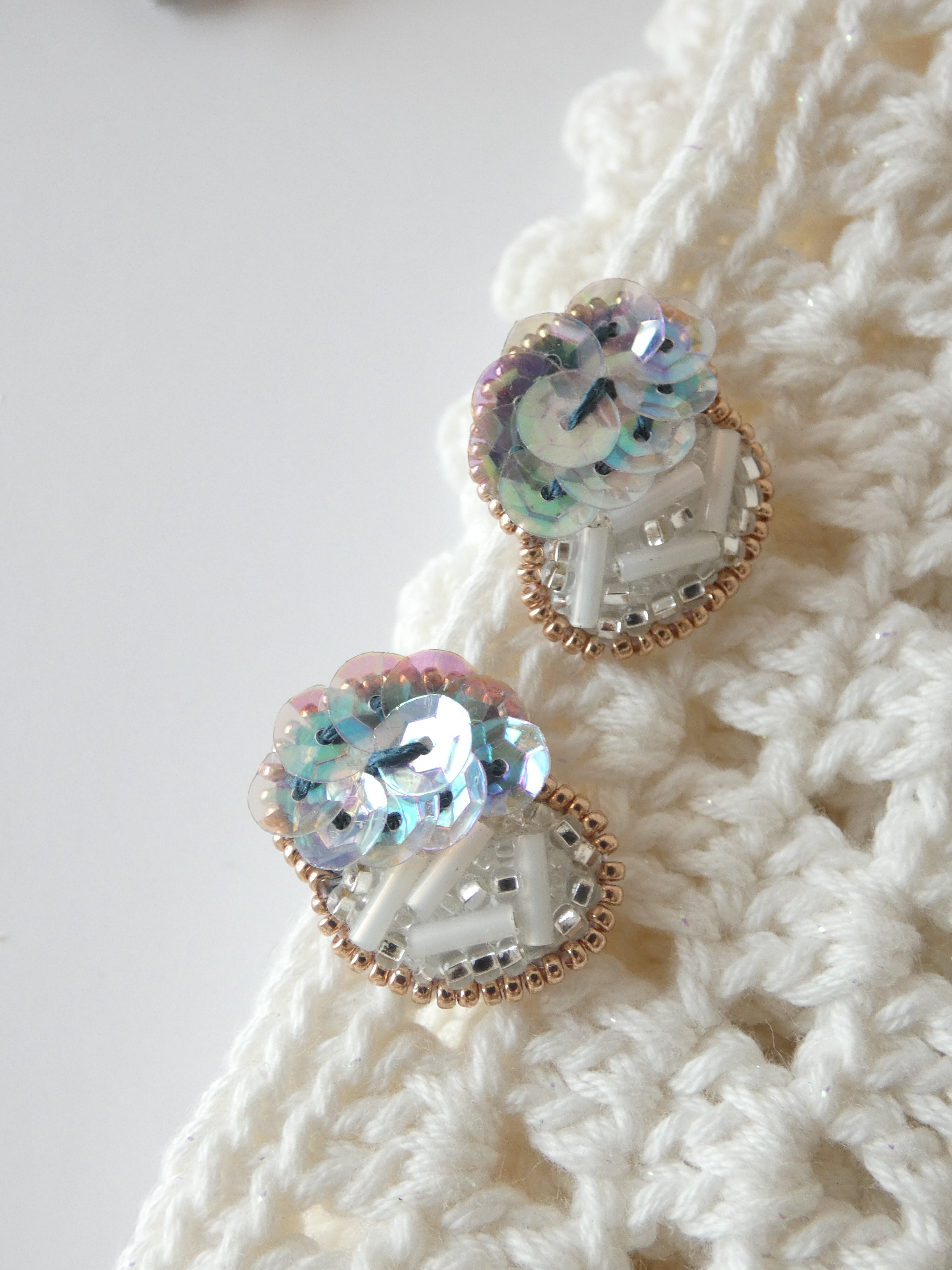 【使用素材】刺繍糸・合皮・金属(ピアス:チタン/イヤリング:真鍮)・ビーズ・スパンコール