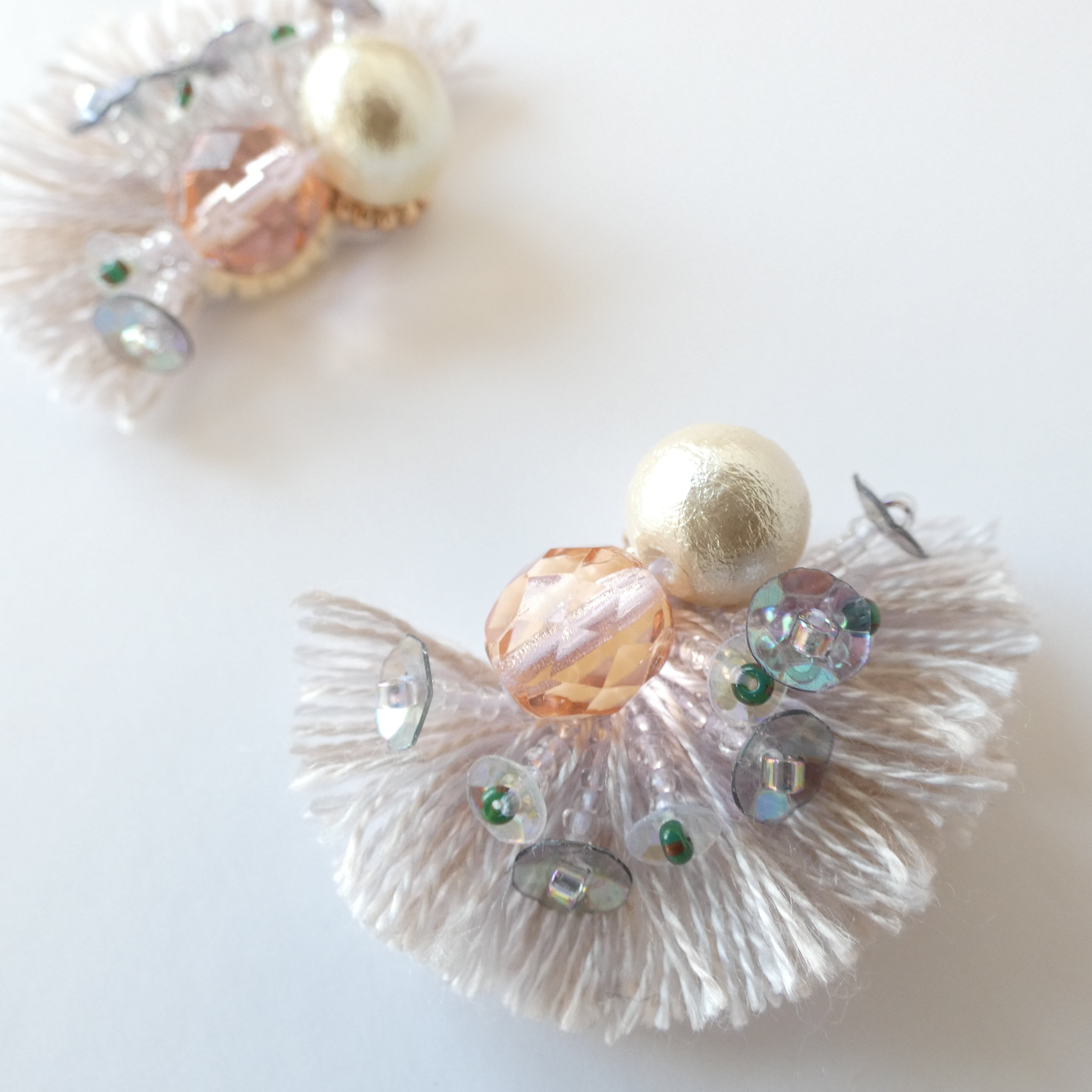 ・中心の大きめのパールとビーズは、コットンパール/チェコガラスビーズを使用。