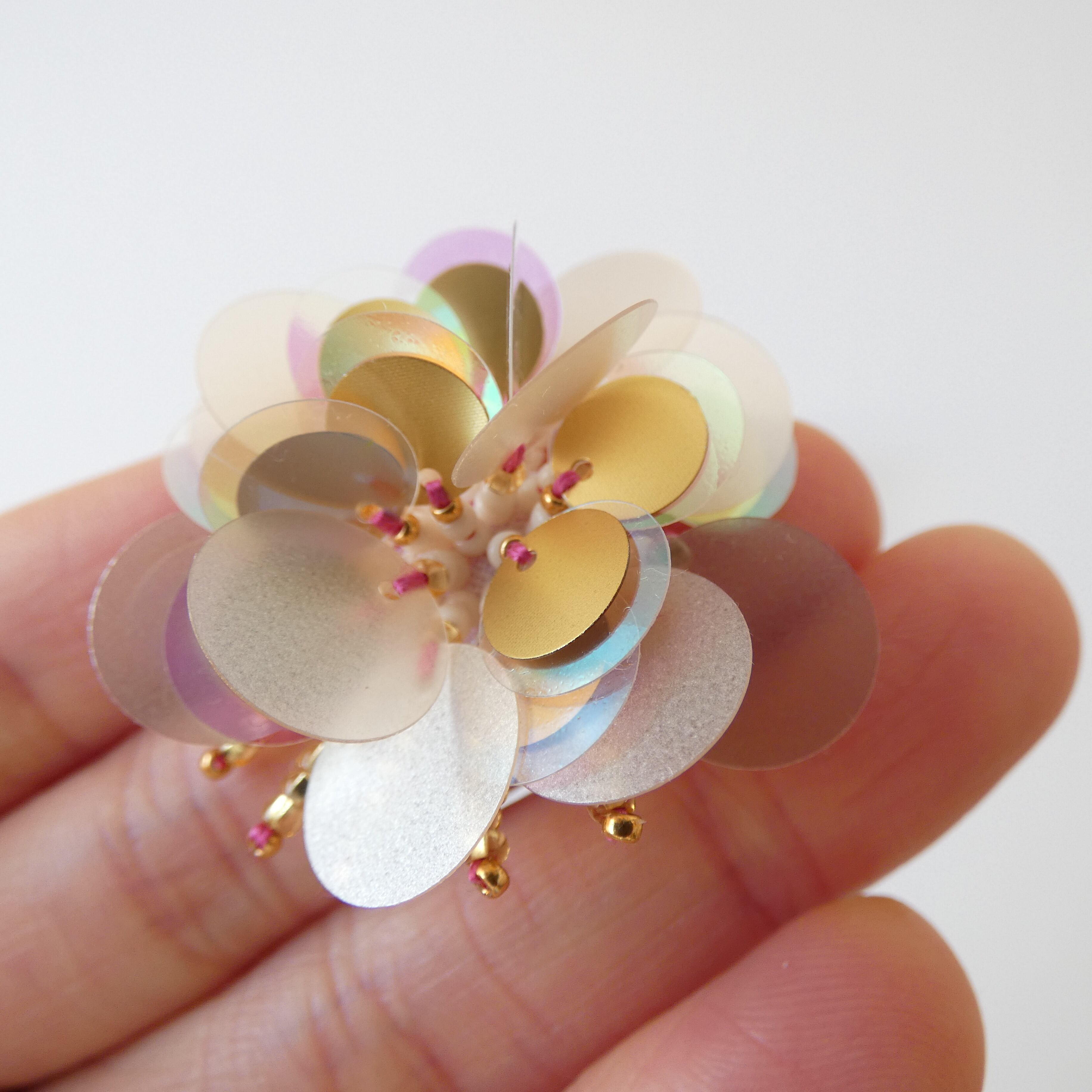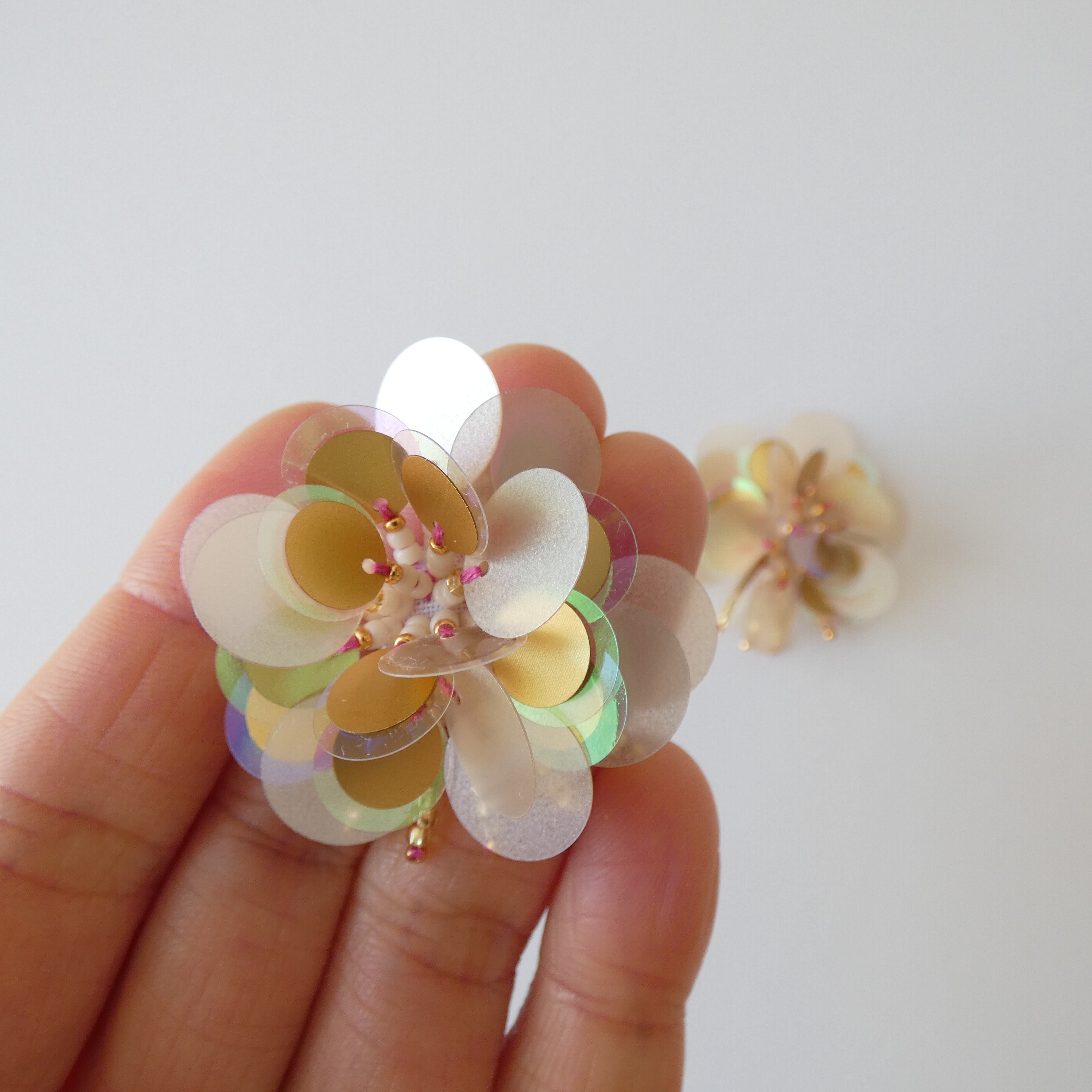 【使用素材】合皮・金属(ピアス:チタン/イヤリング:真鍮)・刺繍糸・ビーズ・スパンコール