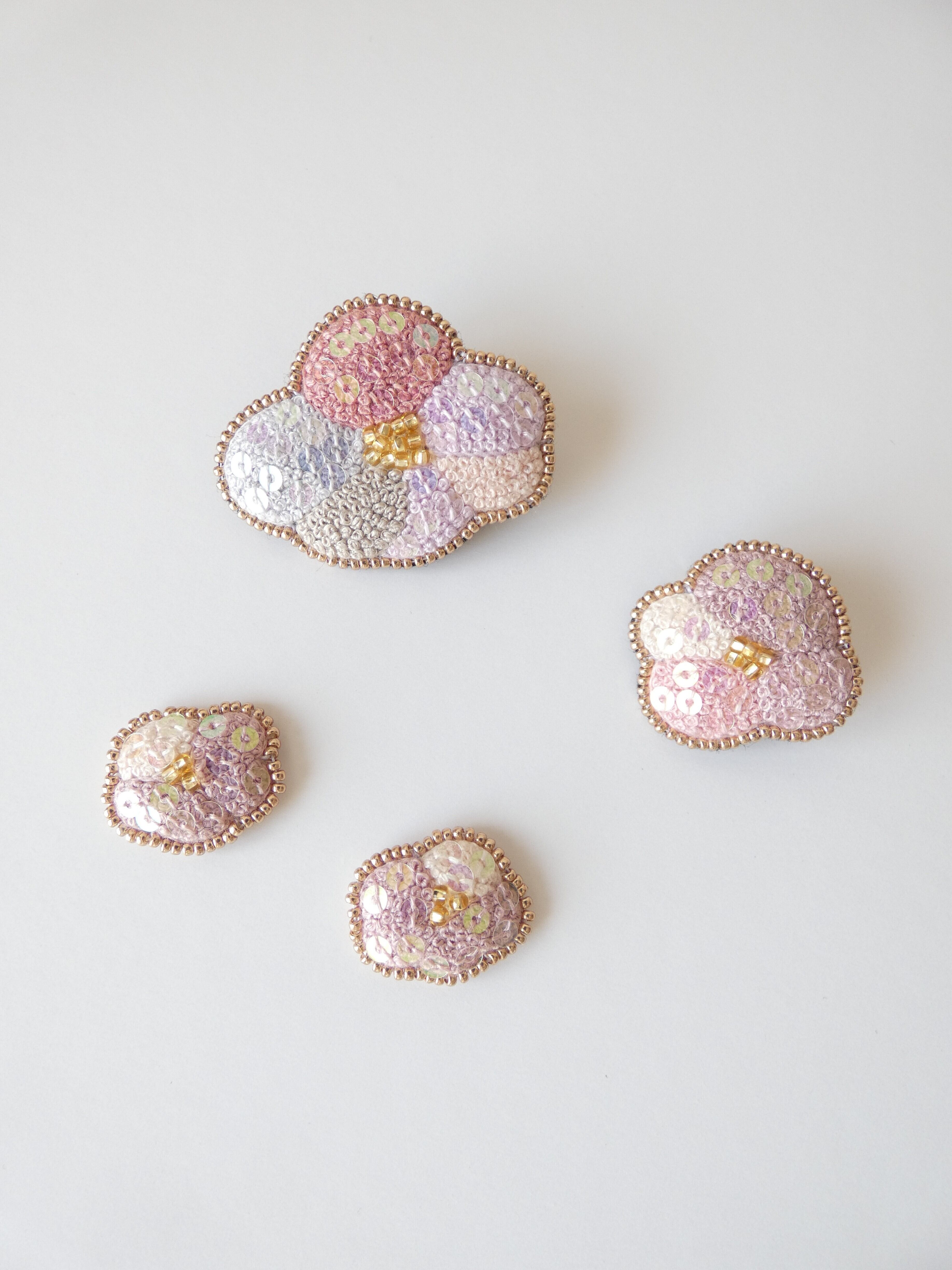 【使用素材】 刺繍糸・ビーズ・金属(真鍮)・合皮・スパンコール