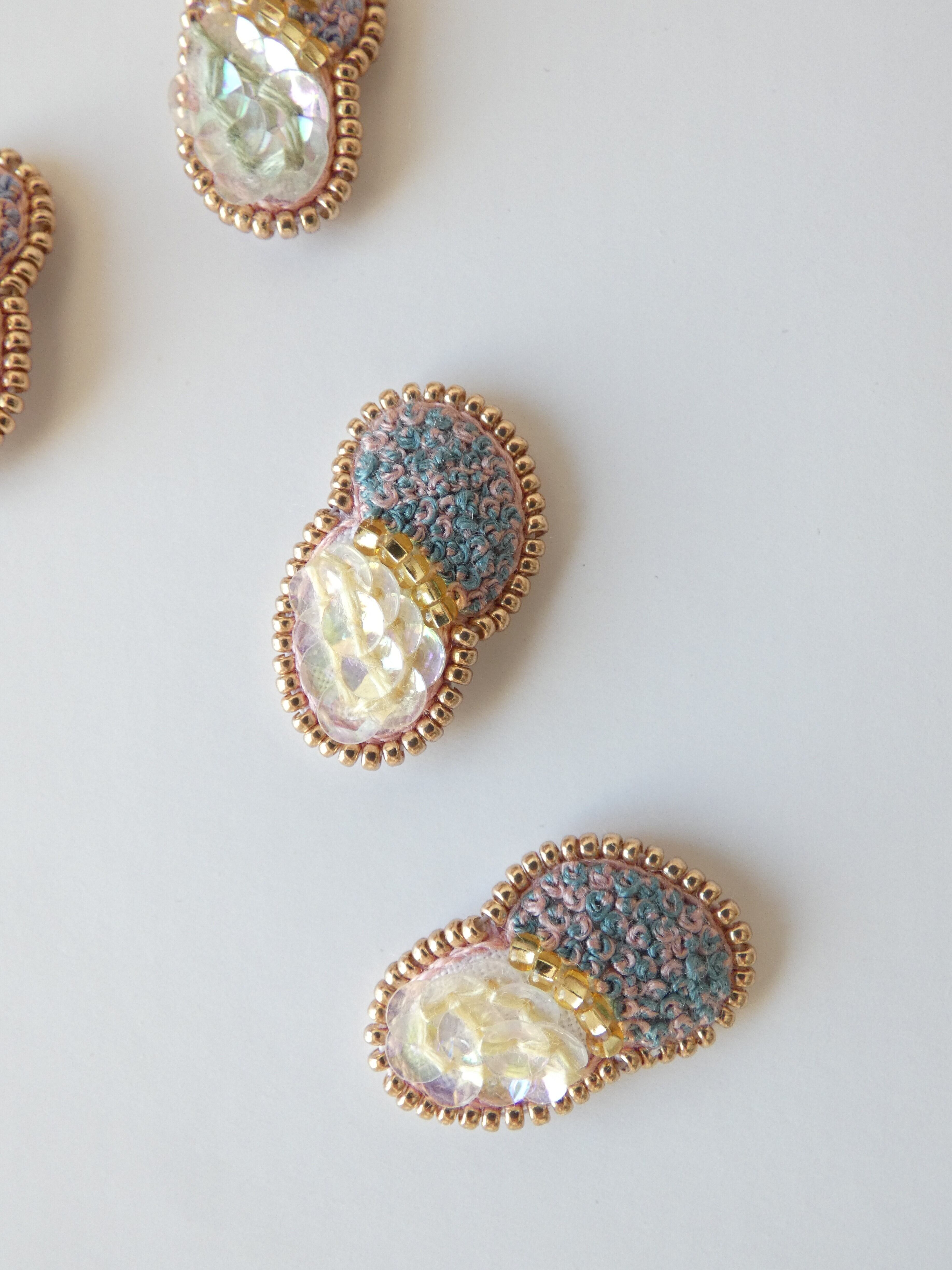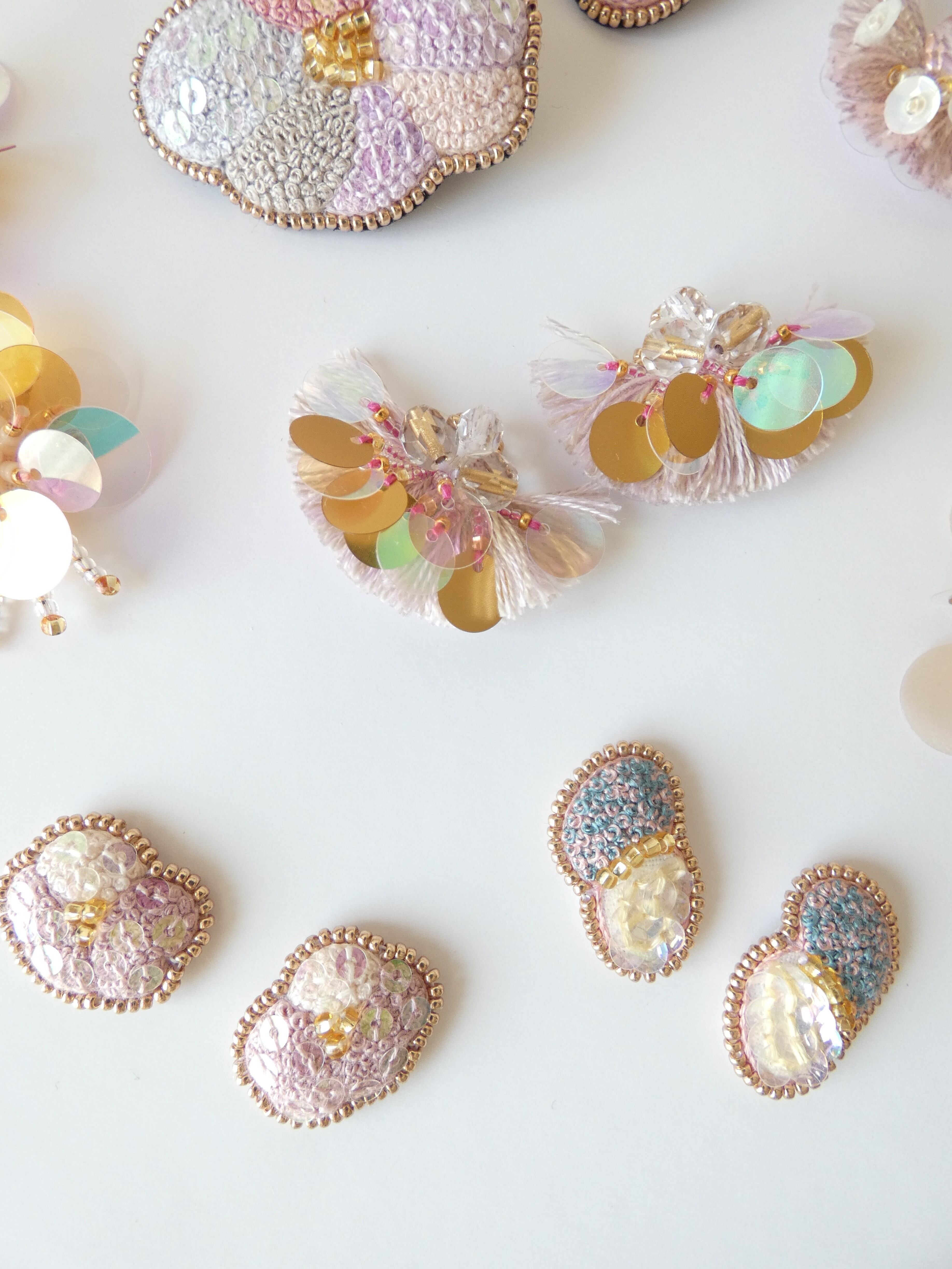 【使用素材】刺繍糸・合皮・金属(ピアス:チタン/イヤリング:真鍮)・ビーズ・スパンコール