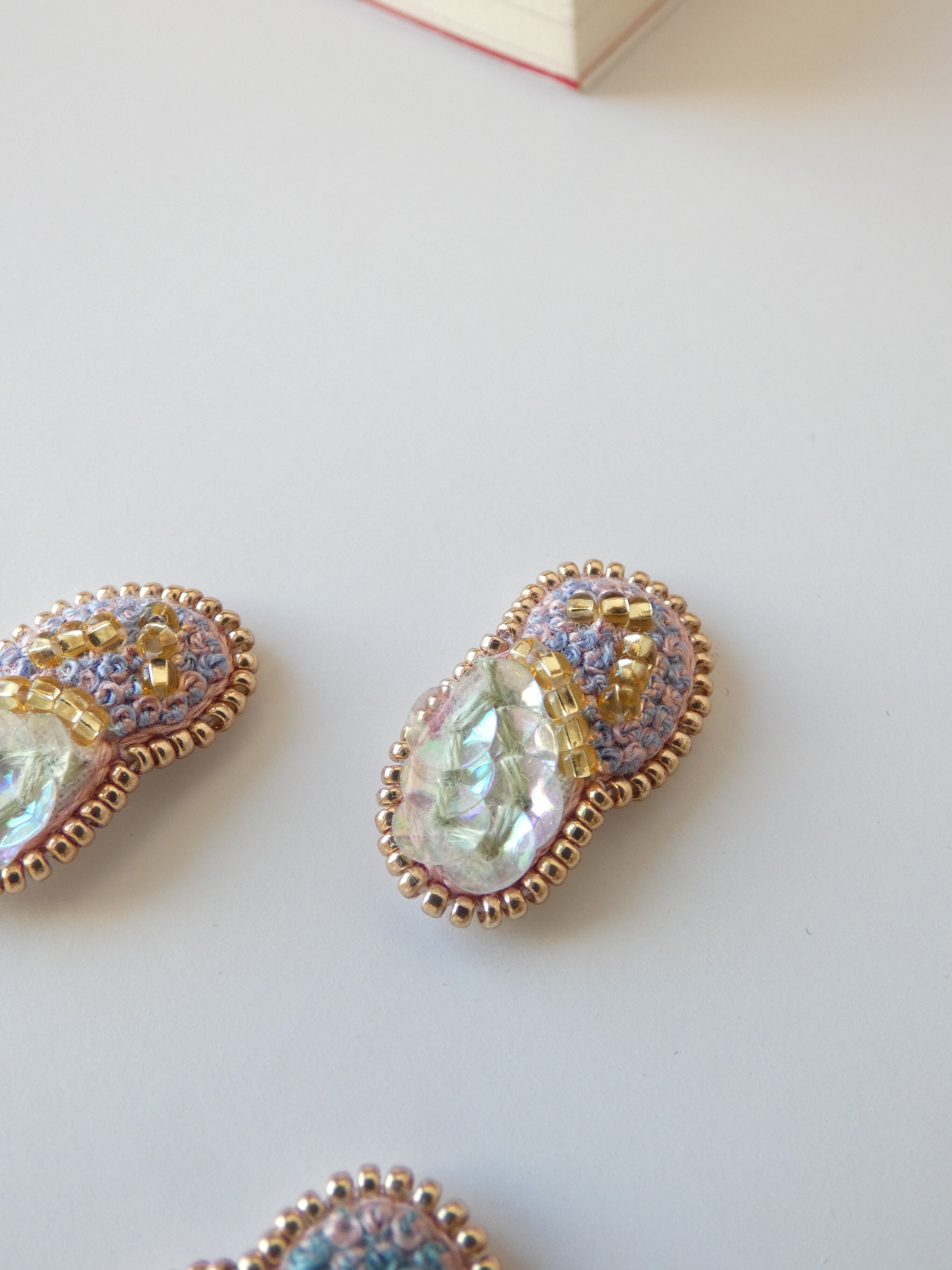 【使用素材】刺繍糸・合皮・金属(ピアス:チタン/イヤリング:真鍮)・ビーズ・スパンコール