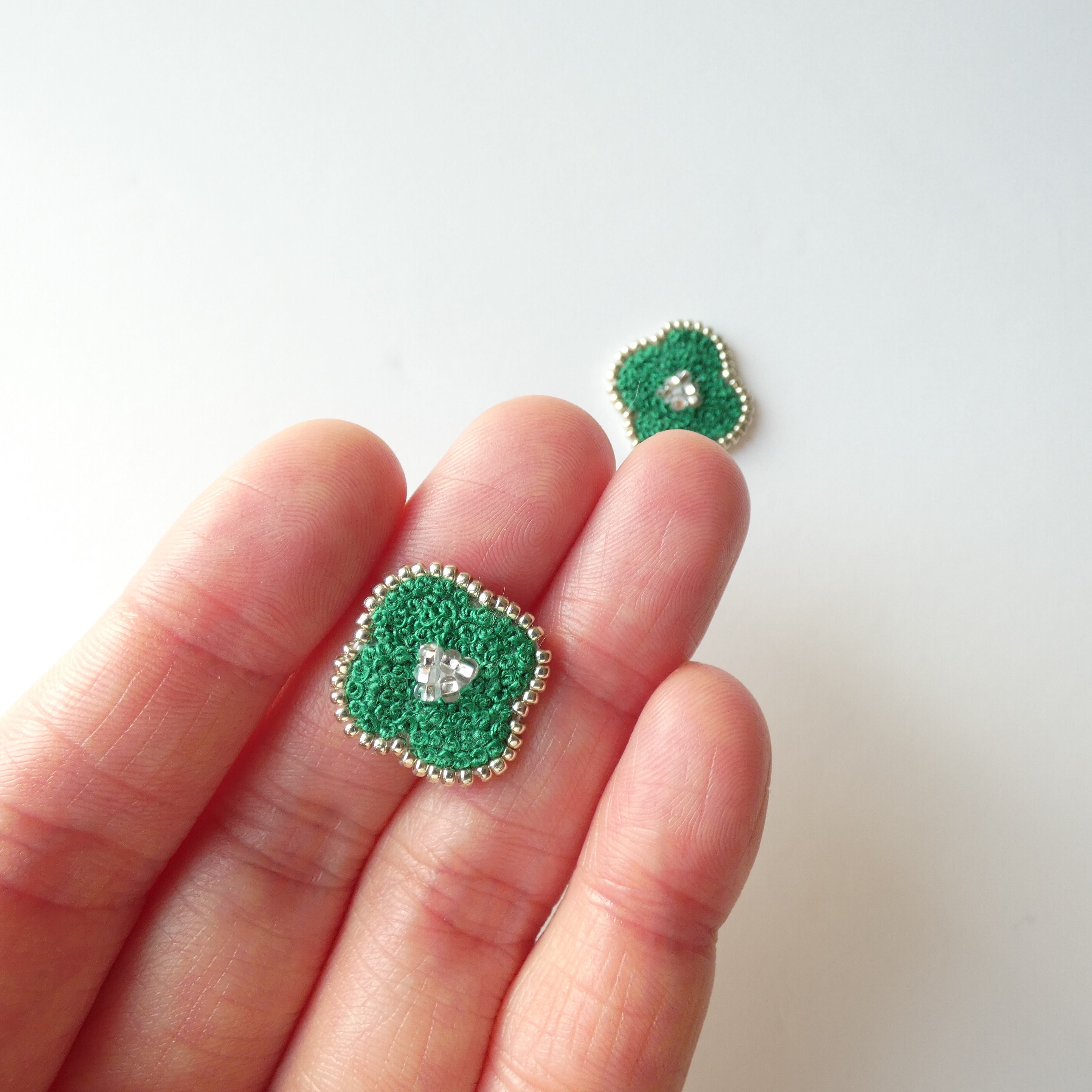 【使用素材】刺繍糸・ビーズ・合皮・金属(ピアス:チタン:イヤリング:真鍮)