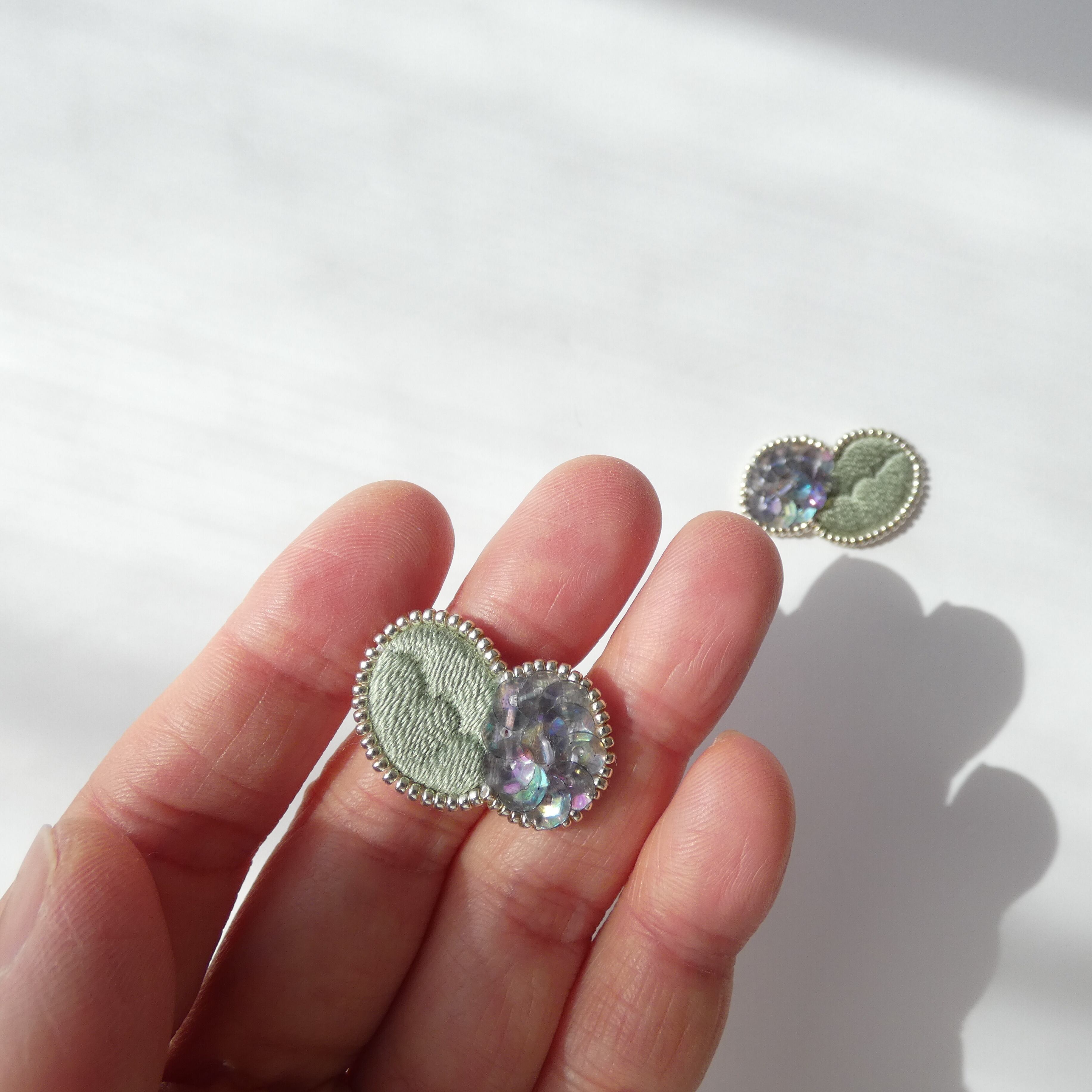 【使用素材】刺繍糸・ビーズ・スパンコール・合皮・金属(ピアス:チタン:イヤリング:真鍮)