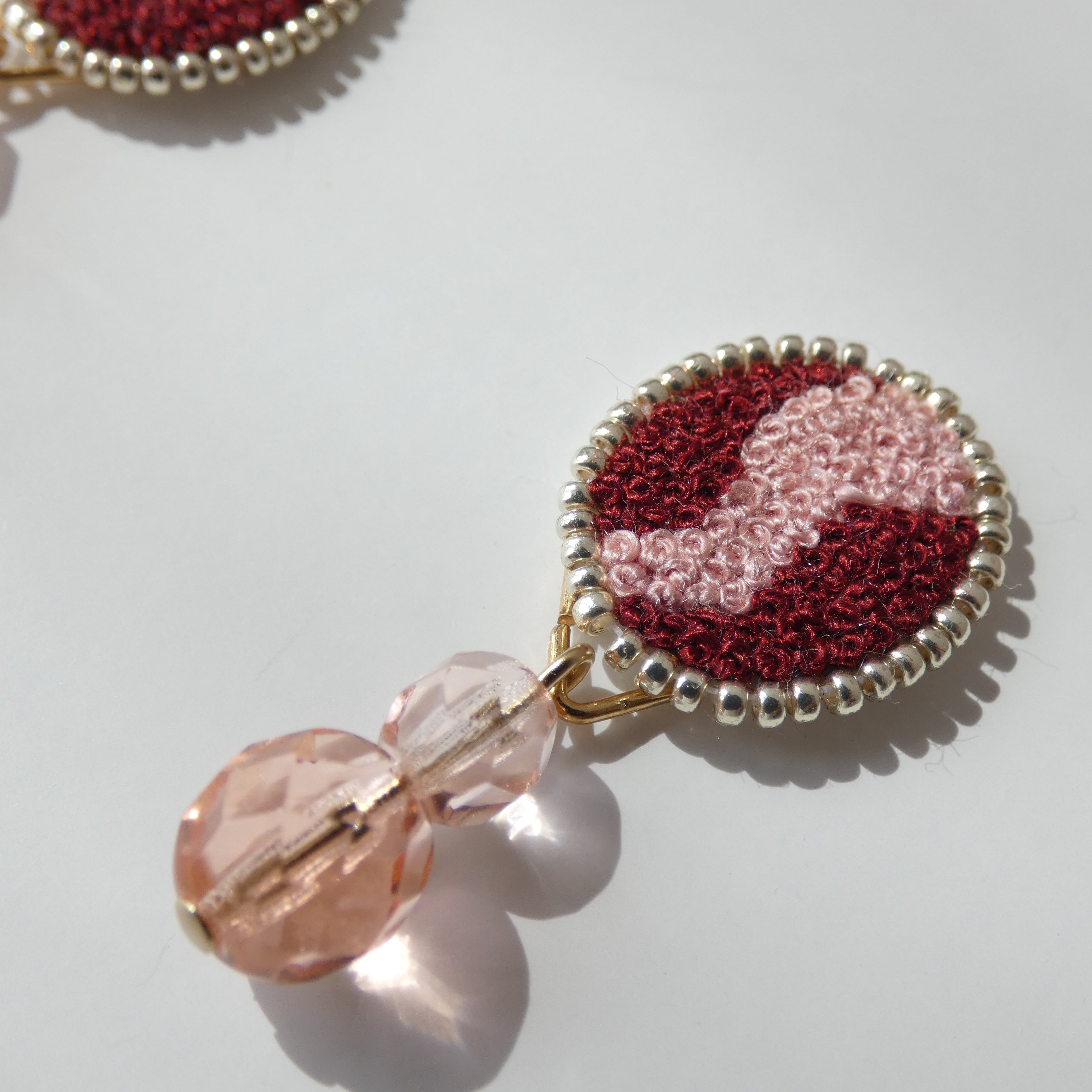【使用素材】刺繍糸・ビーズ・合皮・金属(ピアス:チタン:イヤリング:真鍮)