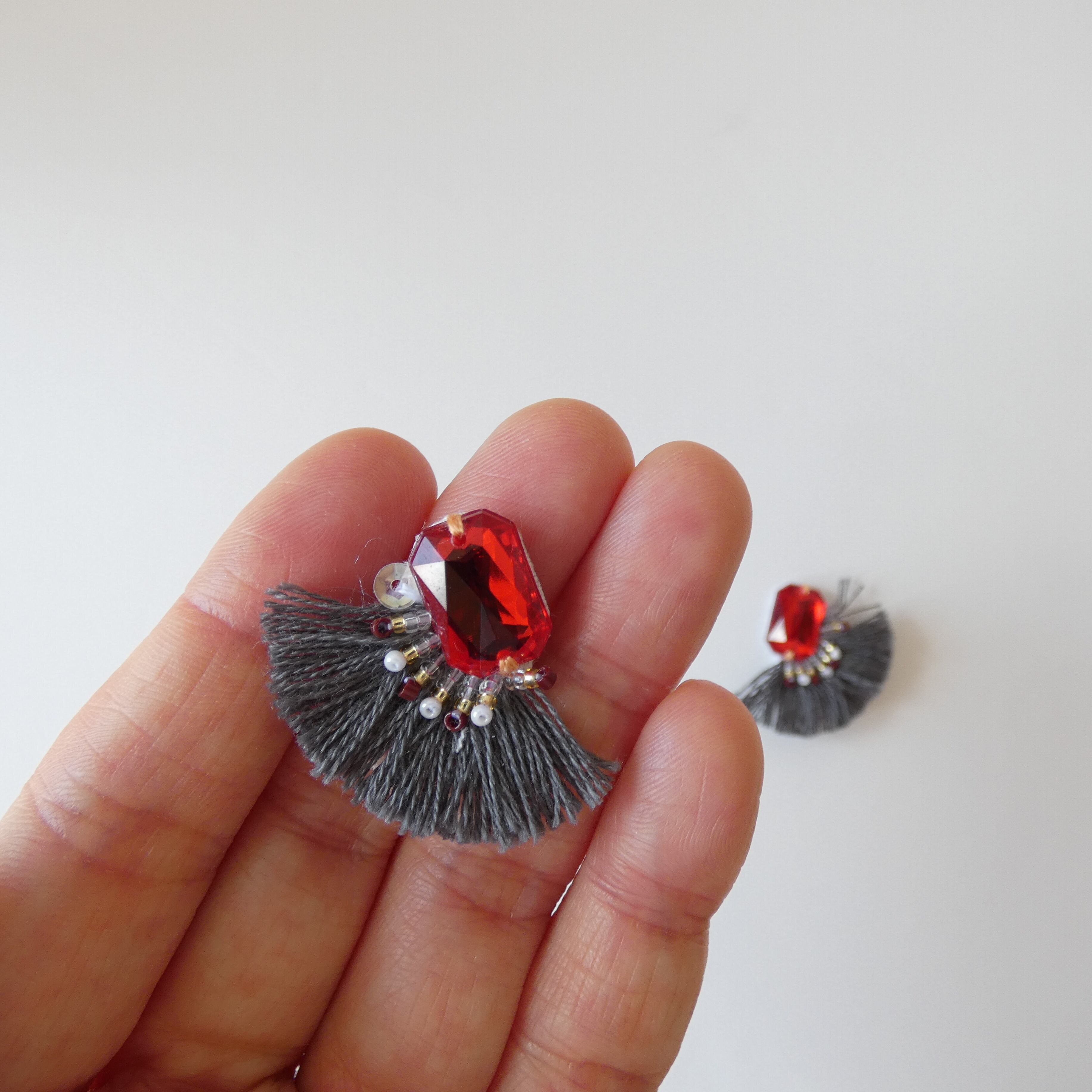 【使用素材】合皮・金属(ピアス:チタン/イヤリング:真鍮)・刺繍糸・ビーズ・スパンコール・アクリルビジュー